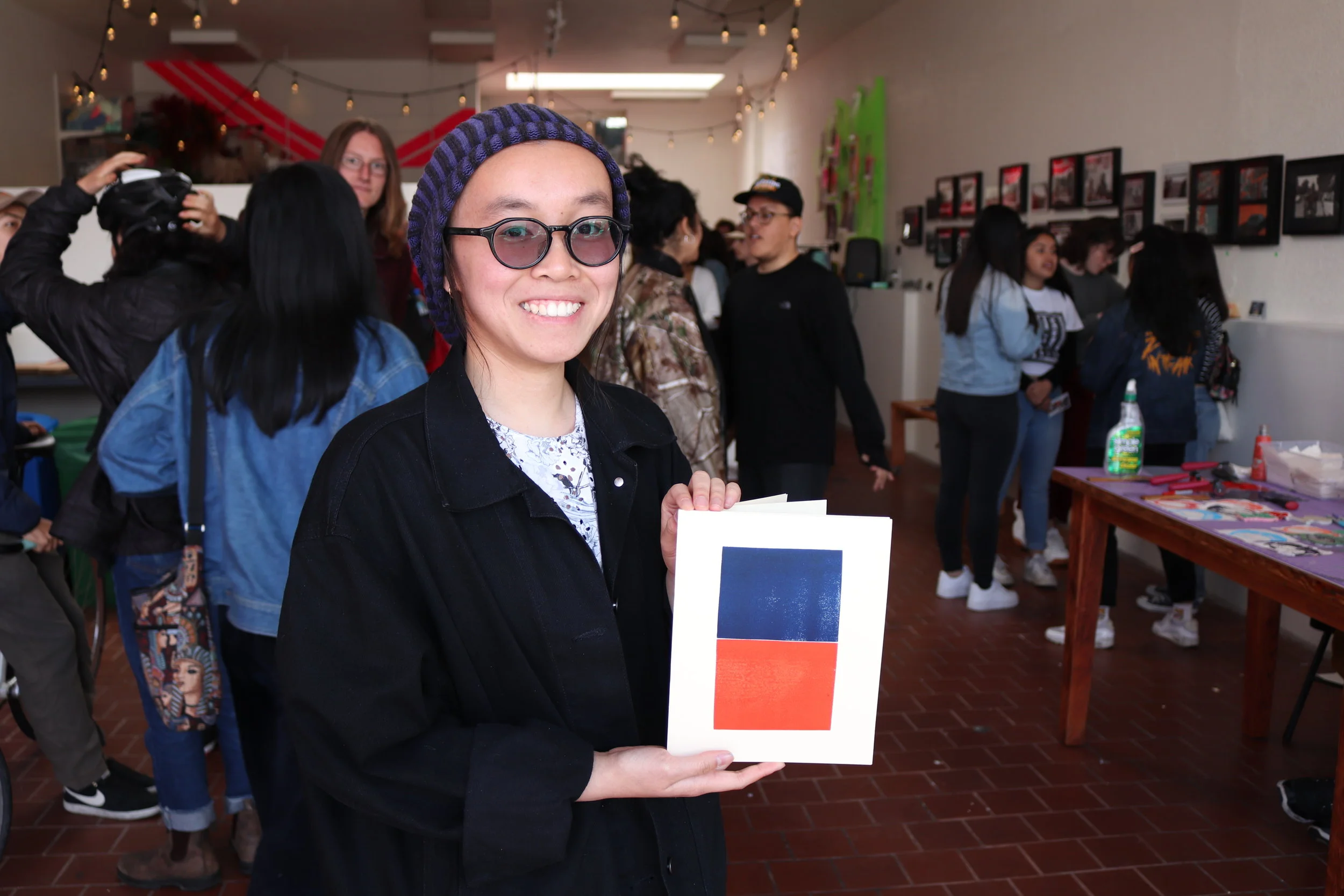 Photos from the opening of our Spring 2019 Exhibition: Belonging. Youth Art Exchange spring 2019 students, family, friends, and YAX community gathered at [x]space arts hub on May 3, 2019. Work was showcased by Spring 2019 YAX students of all disciplines: Architecture Firm, Industrial + Product Design, Black + White Photography, Fashion Design, Filmmaking, Music Production, and Printmaking classes. Students sold their work, there was a live block printing activity, and we celebrated the end of another successful YAX program!
