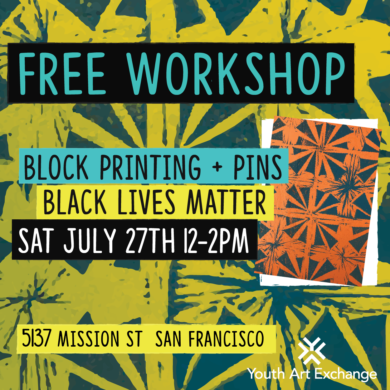 Youth Art Exchange youth artists are running ✨[x]press✨, a Social Justice Pop Up Shop, at [x]space arts hub this summer! From July 17 until Aug 1, Wed-Sat from 12-5pm come by [x]space at 5137 Mission Street to buy totes, t-shirts and more that Maria, Mia, Fiona and Lillian have designed, dyed, and printed on.