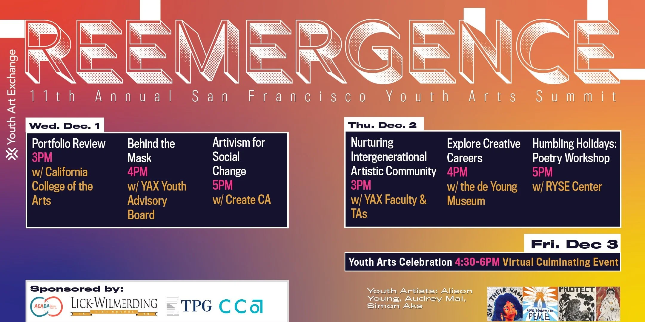 Youth Art Exchange presents ReEmergence: ____________ The 11th Annual San Francisco Youth Arts Summit, a celebration of young artists and their vibrant contributions to the creative and cultural fabric of San Francisco.